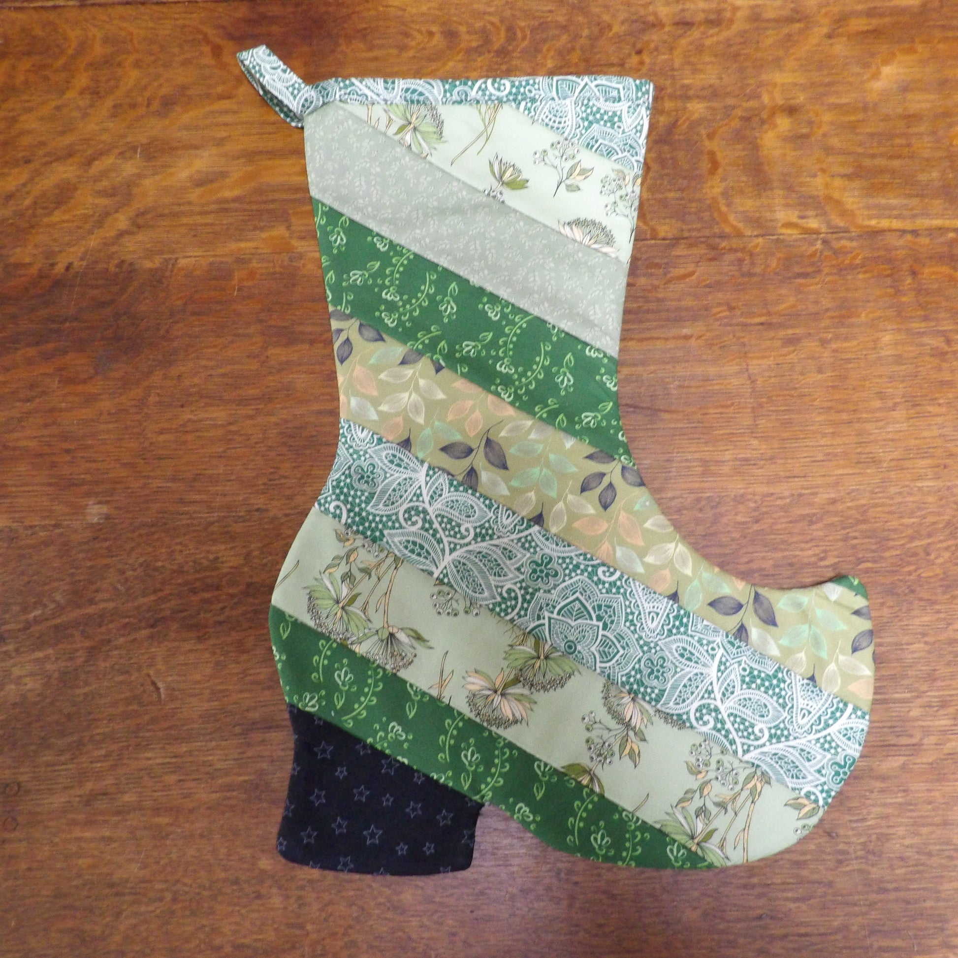 Handmade Quilted Witch's Boot Christmas Stocking - Green (ish)